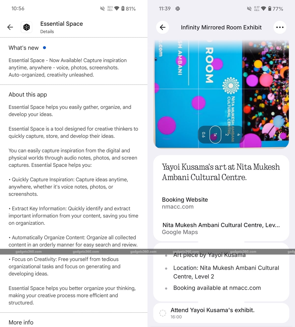 Gadgets 360 was able to confirm that an update to Essential Space was available via the Google Play store, and the feature was working after installing the app update. You’ll also need to be running on Nothing OS 3.1 to use the Camera Capture feature.